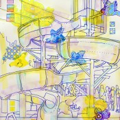 I enter the studio daily, my work clothes soiled and worn, I look around at the paintings in various states of completion to determine the next decision. There are 10-20 pieces in progress on the studio walls, some older pieces that have been pushed, for now beyond conclusion, humbling, but the knowledge I gained from pushing these paintings beyond their limits and mine, invaluable. Some are small experimental pieces to learn about materials and new imagery. Some are waiting the final gluing, as I struggle to face the toxic fumes and difficult process of adhering different materials to the surface. Others are bright new beginnings, drawings hinting of the new work to come, and others are waiting to be completed with clear direction, but others wait because the process to achieve completion is tedious. I formulate a plan and begin working.