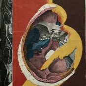 When making these collage works I kept in mind the cubist and surrealist poet Pierre Revardy’s idea of what makes an image powerful. He thought an image is born from a juxtaposition of realities that are more or less far apart. The more distant and distinct the relationship between the realities, the greater the image’s emotional power and poetic reality. Revardy believed an image is powerful because the associations are distant and true. Using mostly 20th century artifacts (I like the color printing process of 1960s magazines, particularly Paris Match) my work is at the nexus of Revardy’s idea of the image and an analog version of the cracked lens randomness encountered while browsing the web.